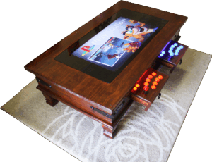 My current table is more than just a sitdown cocktail arcade/retro system but has evolved into a more universal entertainment hub. The built-in screen is sadly seldom used these days as I opted for the larger TV screen which the table connects to via a HDMI cable. Furthermore, I’ve added the ability to play more hands-on feature and games such as Guitar Hero, Rockband, Lightgun games and even Karaoke! All of which connect via internal dedicated USB dongle devices or through Bluetooth (less clutter and easy to setup). It’s a real hit for entertaining guests who previous thought none-the-wiser about the coffee table’s hidden secrets.